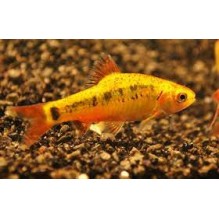 Ruby Barb - Punctius NigrofasciatusOur price: £2.00The Ruby Barb is a peaceful community that once settled will reward you with stunning colour. It is sensitive to poor water quality so maintenance on the aquarium is a must. It loves open swimming space like most barbs but aquariums should be planted and decorated to provide ample hiding space.