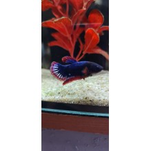 Female Hellboy BettaOur price: £10.99The female Hellboy Betta is a striking variant of Betta splendens, known for her bold red, blue, and black coloration that mimics the fiery tones of the male Hellboy line. With a slightly more subtle appearance than males, she still boasts rich marbling, metallic sheens, and a spirited personality. Her shorter fins and rounded body make her an elegant yet hardy choice for aquarists looking for something truly eye-catching.
