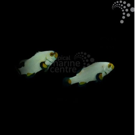 Platinum Clownfish are a striking and sought-after morph of the Amphiprion ocellaris, known for their stunning all-white bodies accented by faint or minimal black markings around the eyes and fins. Their pure white coloration, combined with their small, elegant size, makes them a standout in any reef tank. These clownfish are hardy, peaceful, and relatively easy to care for, making them a great choice for beginner and intermediate aquarists. As omnivores, they thrive on a varied diet of high-quality pellets, frozen brine shrimp, mysis, and algae. While they do not require an anemone, they may form a symbiotic relationship with one in the wild. Platinum Clownfish are generally peaceful but can become territorial with other clownfish, especially in smaller tanks. They thrive in aquariums with stable water conditions and plenty of hiding spots, making them a perfect addition to any reef aquarium.